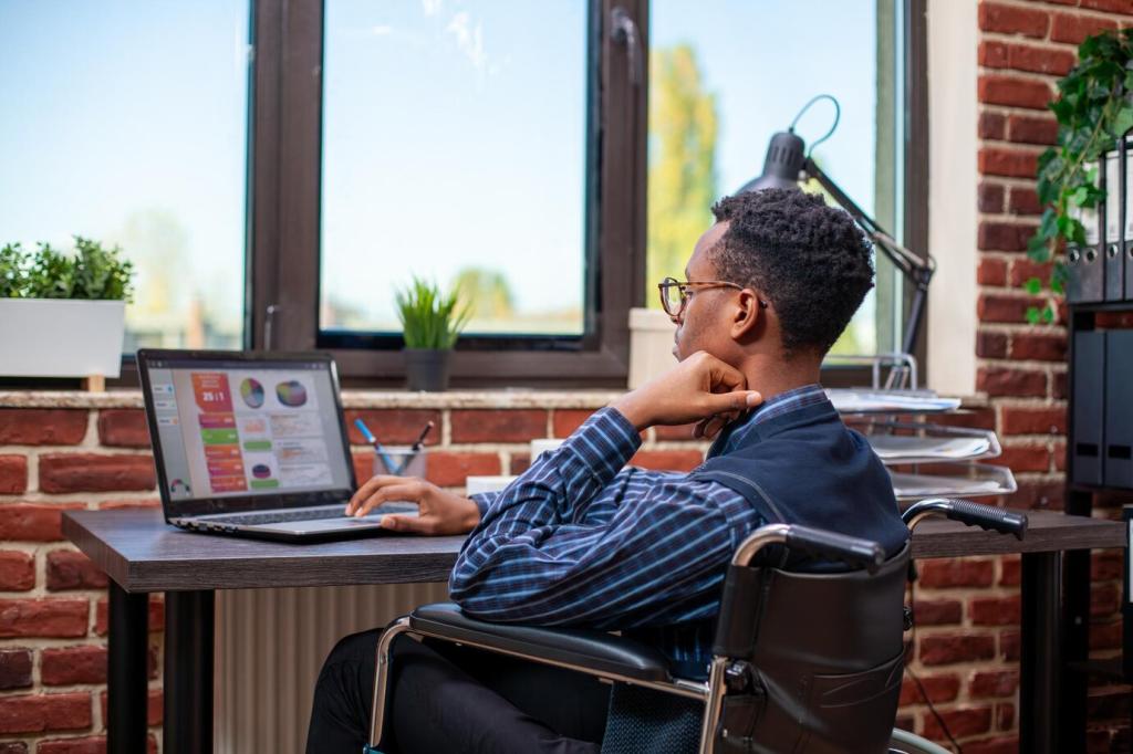 Arbeite in 90-Minuten-Blöcken, atme tief durch und geh kurz ans Fenster. Diese kleinen Pausen schützen Konzentration und Rücken. Welche Blocklängen funktionieren für dich? Schreib uns deine besten Taktiken für nachhaltige Energie.